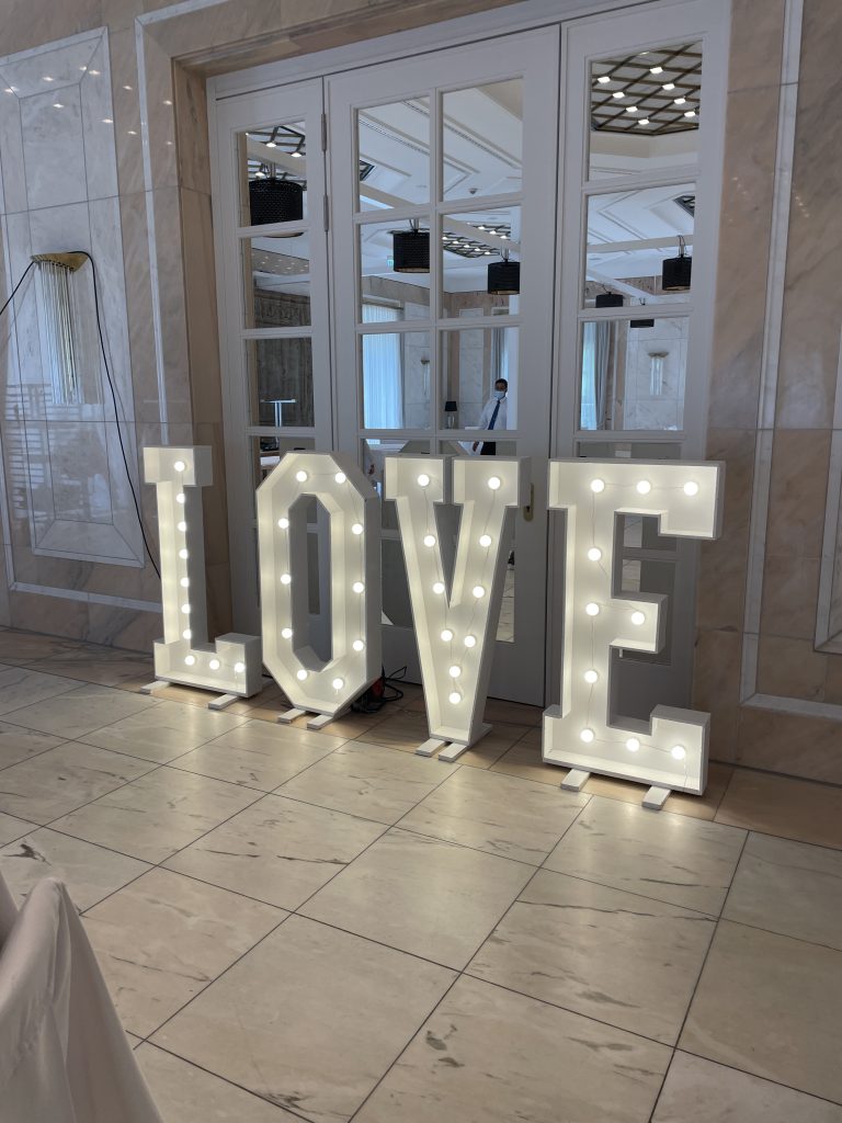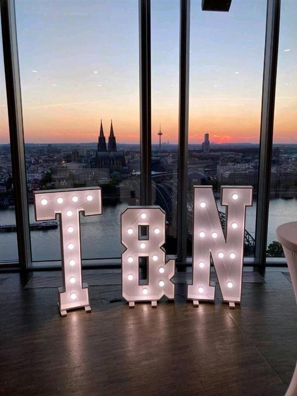 Wir bieten eine Vielzahl an Dienstleistungen, damit eure Hochzeit unvergesslich wird. Unsere Leuchtbuchstaben setzen besondere Akzente, während unsere Candy Bars optisch und geschmacklich ein Highlight liefern. Unser vielfältiges Besteck und die Tischdeko verleihen euren Tischen den perfekten Rahmen. Zudem sorgen unsere Hochzeitsspiele für Unterhaltung und schöne Erinnerungen für Groß und Klein!